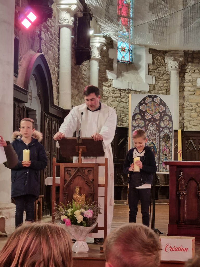 Ce matin nous sommes allés à l église pour une célébration animée par Père Jean. Nous avons pu également admirer la crèche.