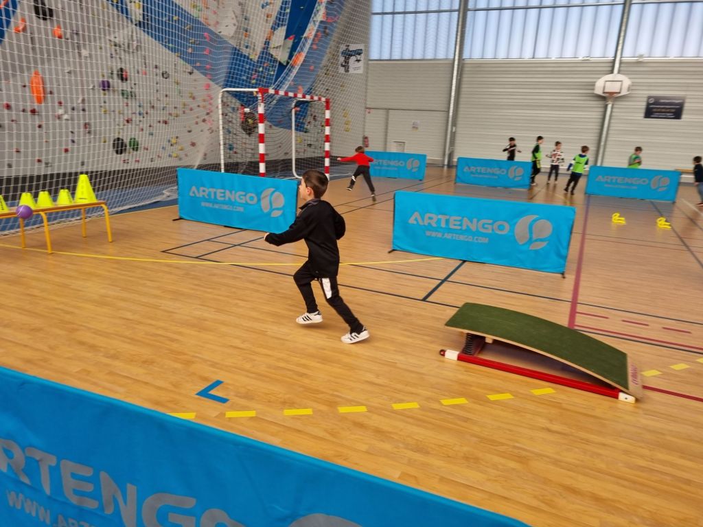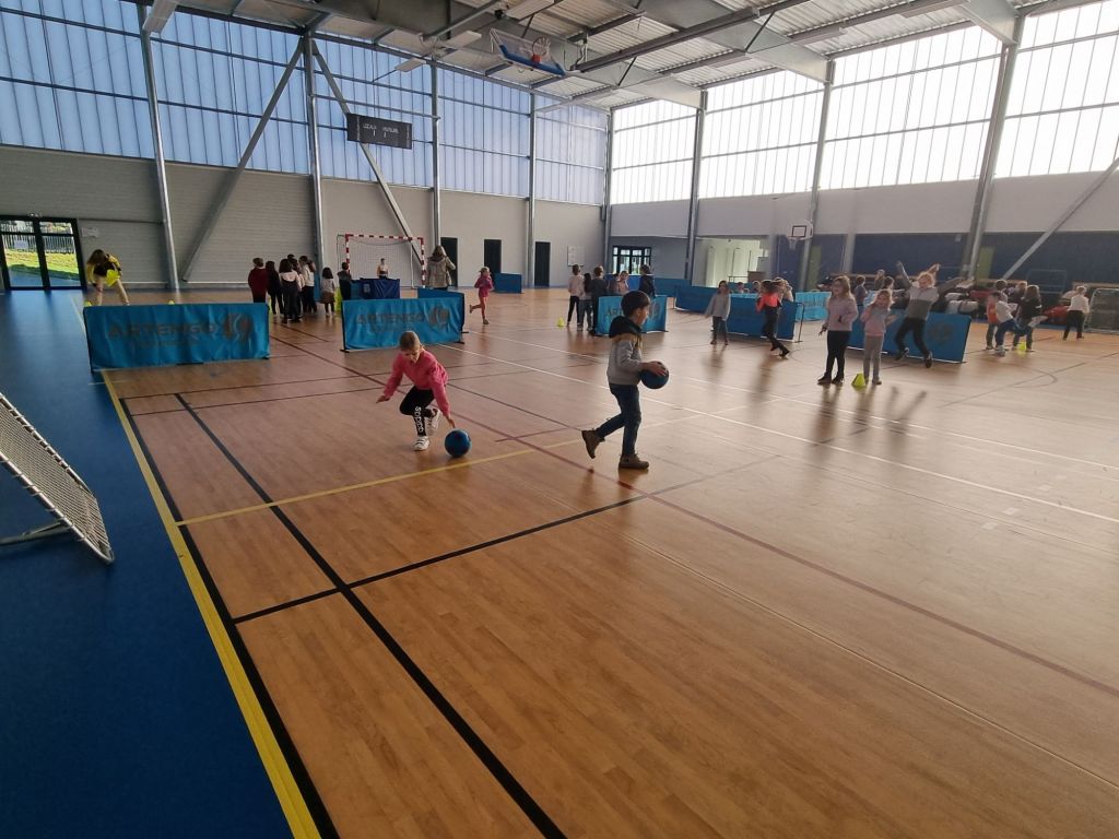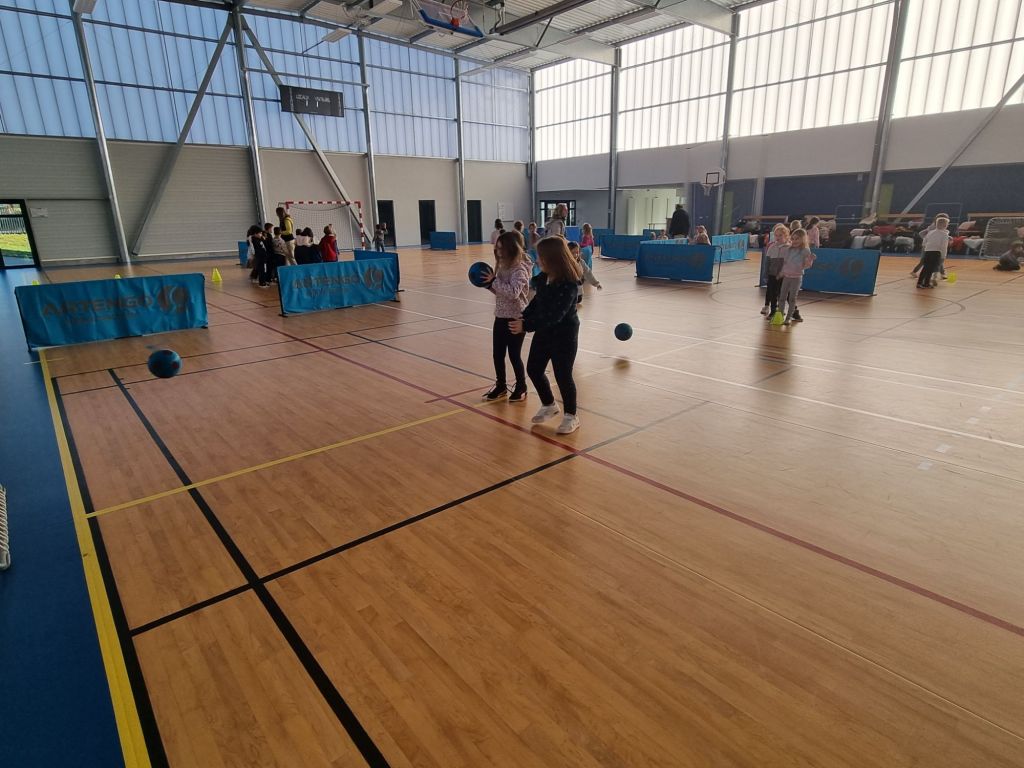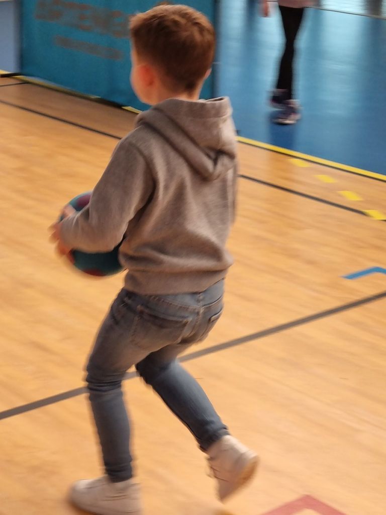 Cet après-midi, nous sommes allés à la salle de sport. Nous avons fait des ateliers mini-hand encadrés par les professeurs de sport du collège.