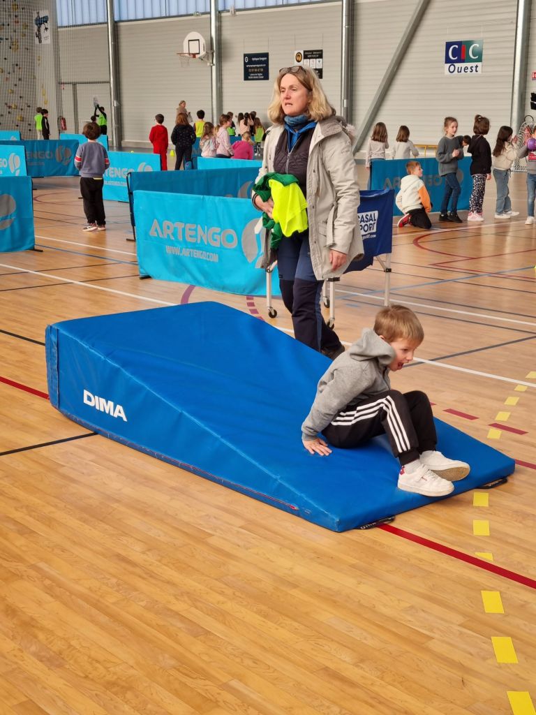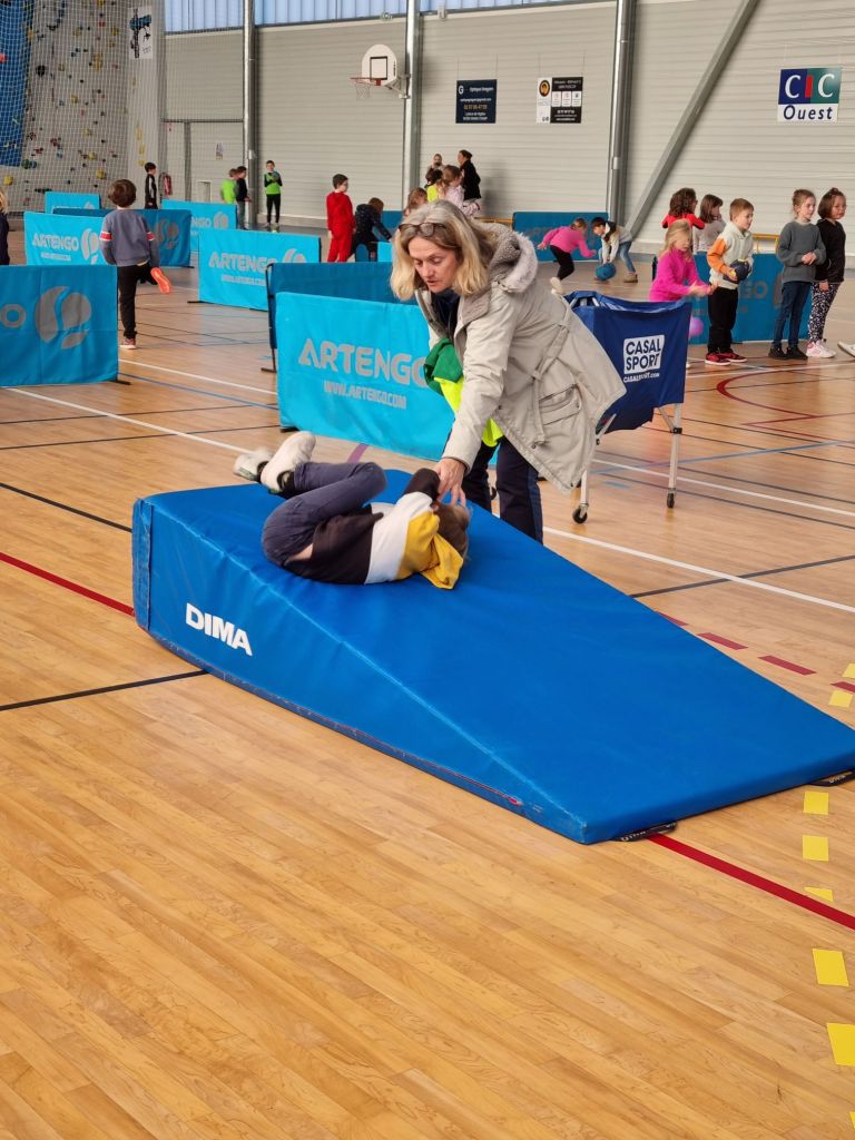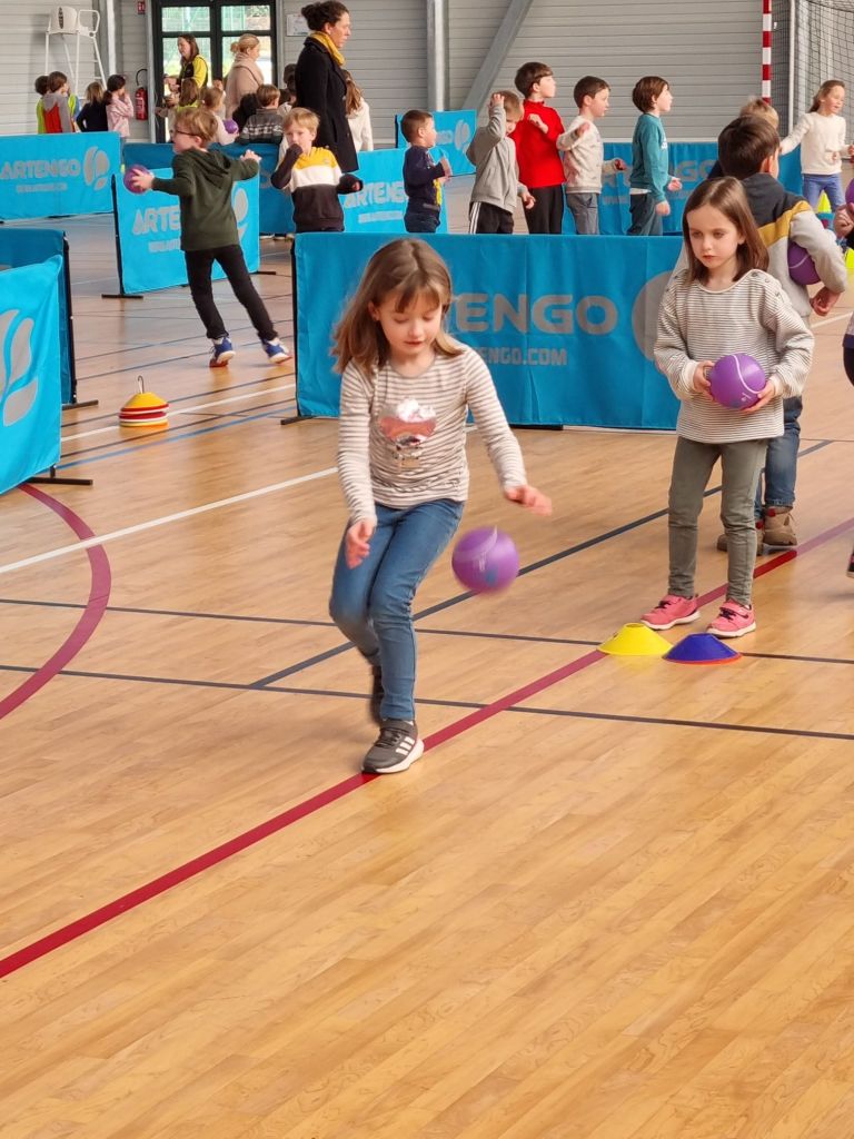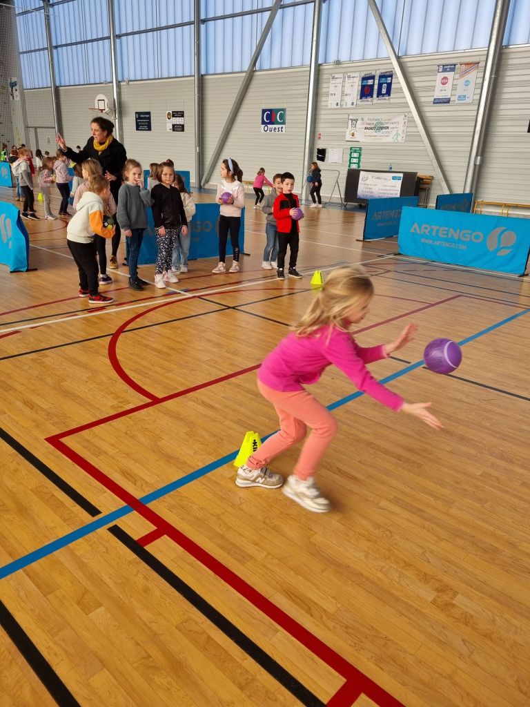 Cet après-midi, nous sommes allés à la salle de sport. Nous avons fait des ateliers mini-hand encadrés par les professeurs de sport du collège.
