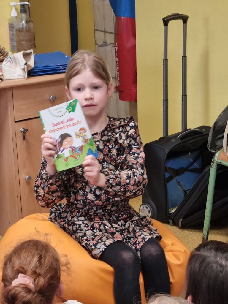 Nous arrivons au 3ème trimestre et les enfants lisent de mieux en mieux. Ils ont plaisir à envoyer un livre de la maison et à le lire devant la classe. Quel plaisir de les entendre lire et de voir les progrès de chacun!