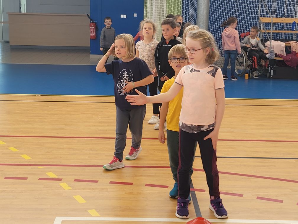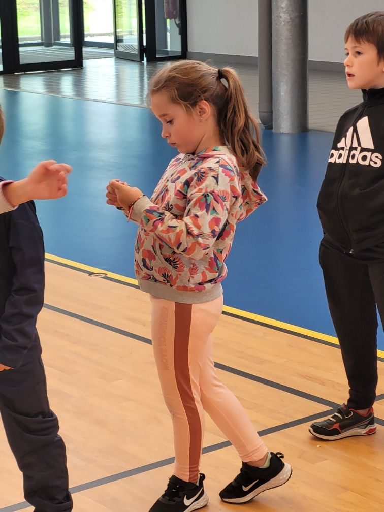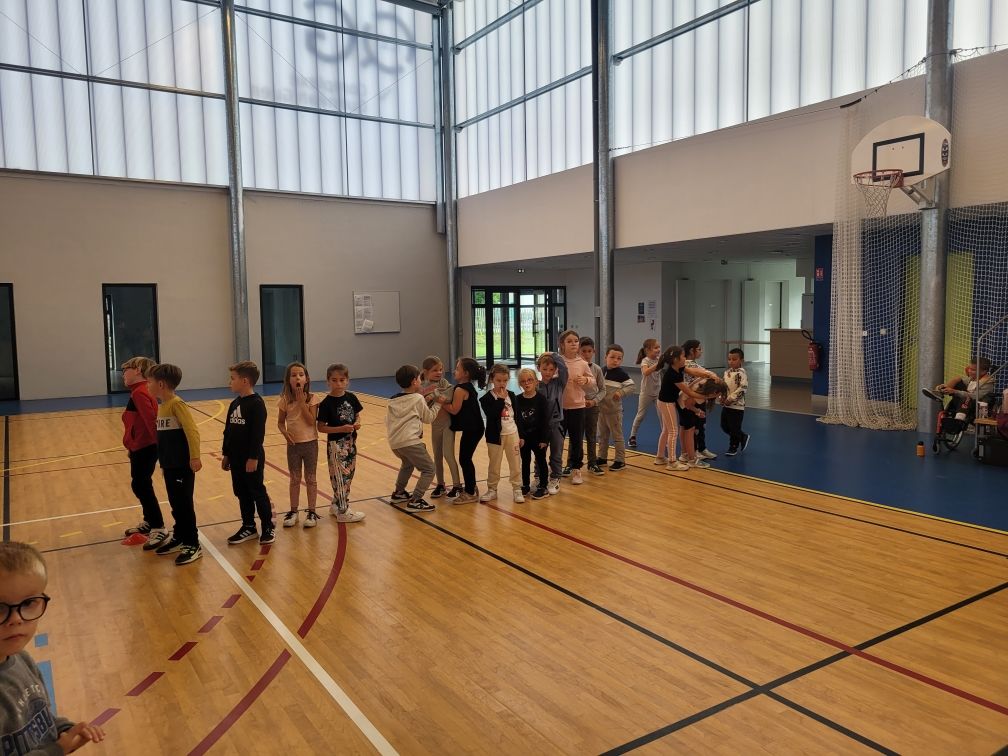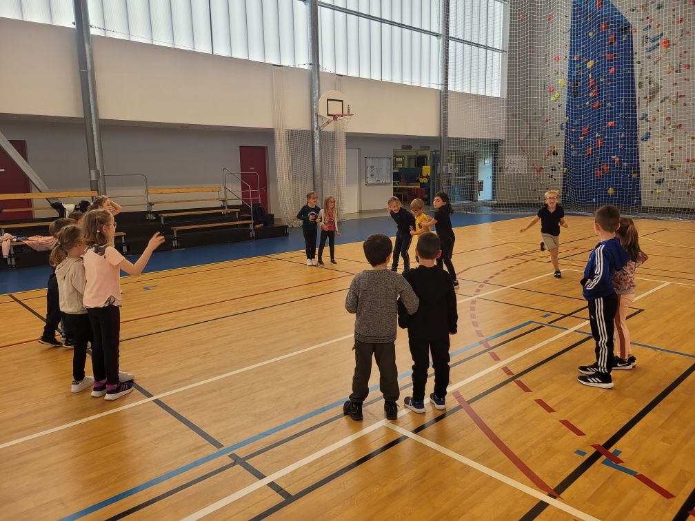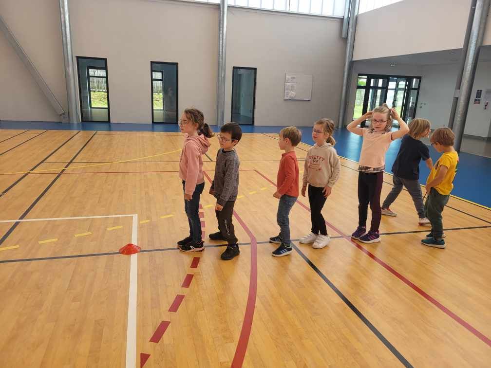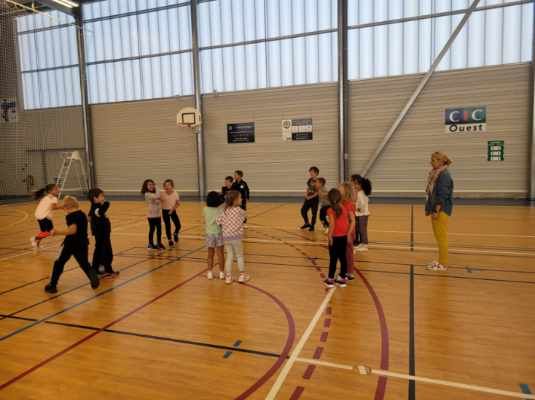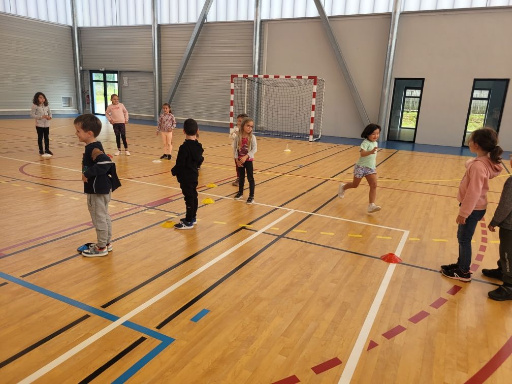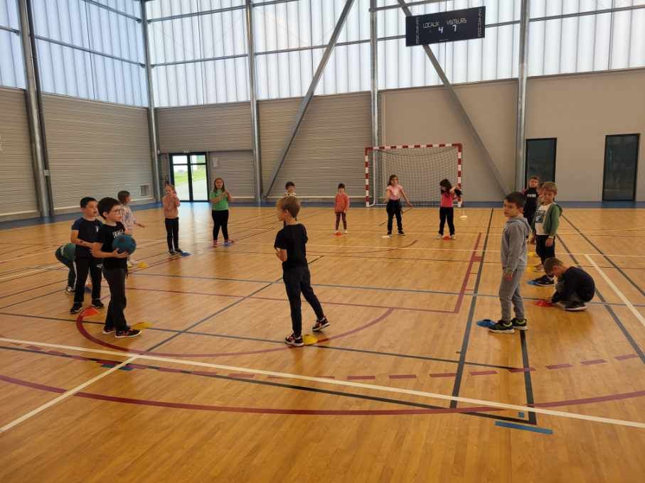1 fois toutes les 2 semaines, nous allons faire du sport dans la salle de sport du collège avec les CP et Ce1 des classes de Laure et de Virginie. Pour cette période, les élèves vont faire des ateliers jeux collectifs avec et sans ballon.