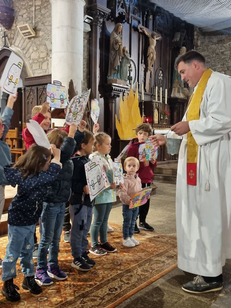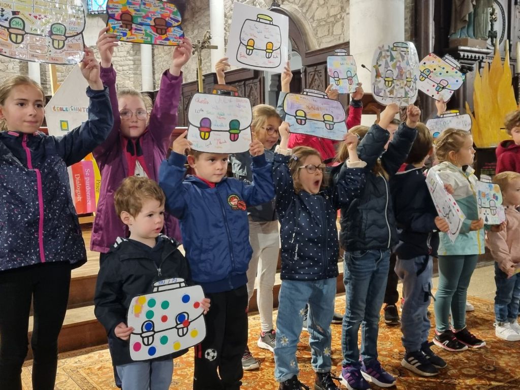 Le vendredi 27 septembre, nous sommes allés à l’église pour une célébration de rentrée. Le prêtre a fait la bénédiction des cartables, celui des CP était porté par Yanis.