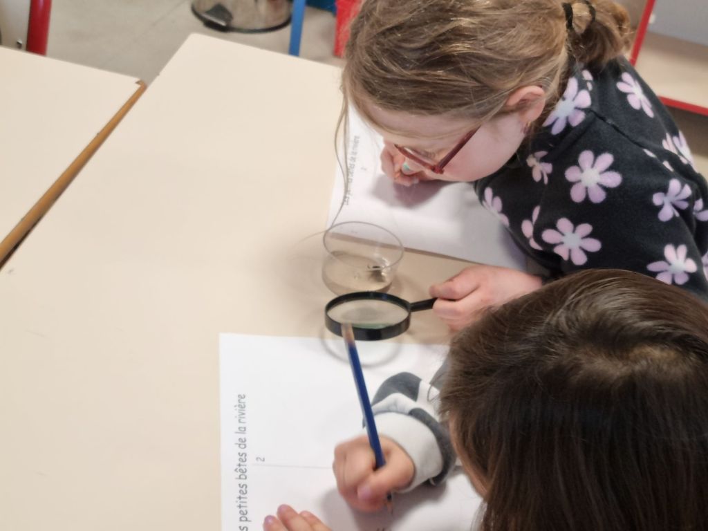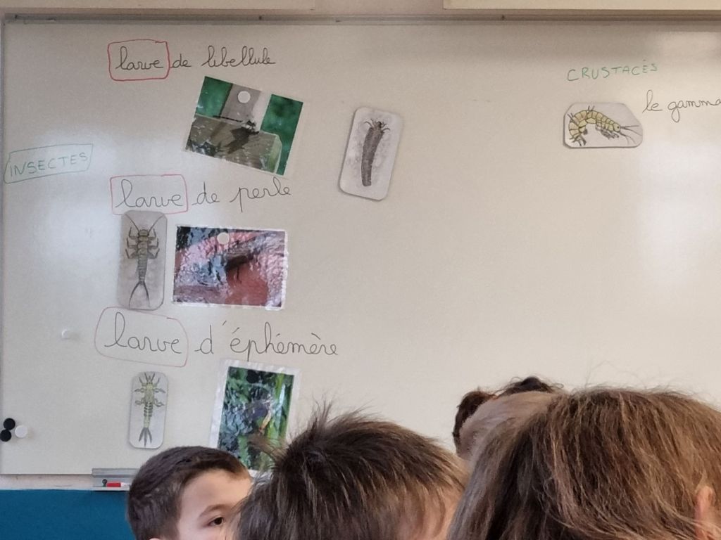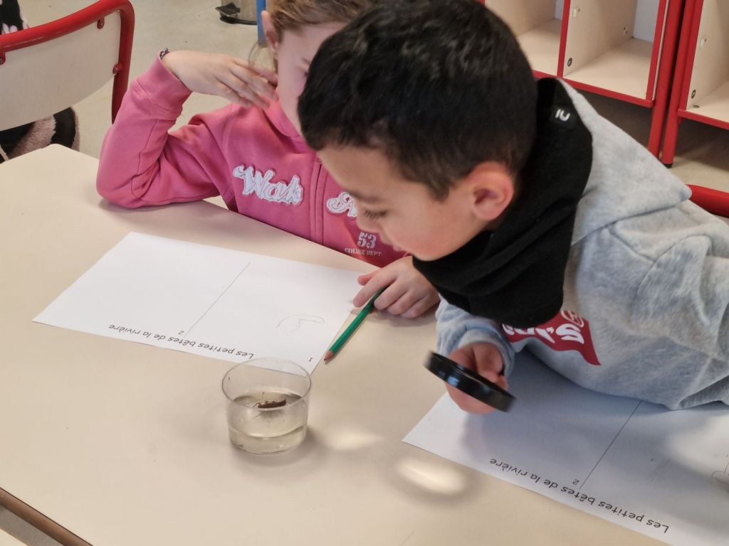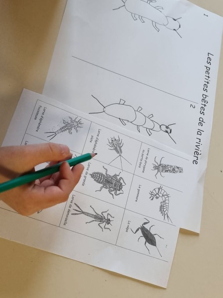 Durant la 2eme partie de matinée, les enfants ont dessiné les animaux de la rivière qu’ils avaient pêché hier. Puis ils ont cherché leur nom à partir d une fiche de clé d identification.