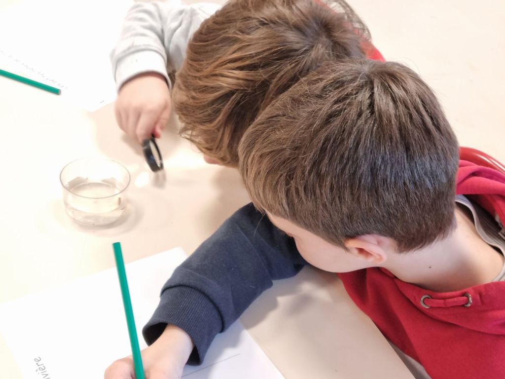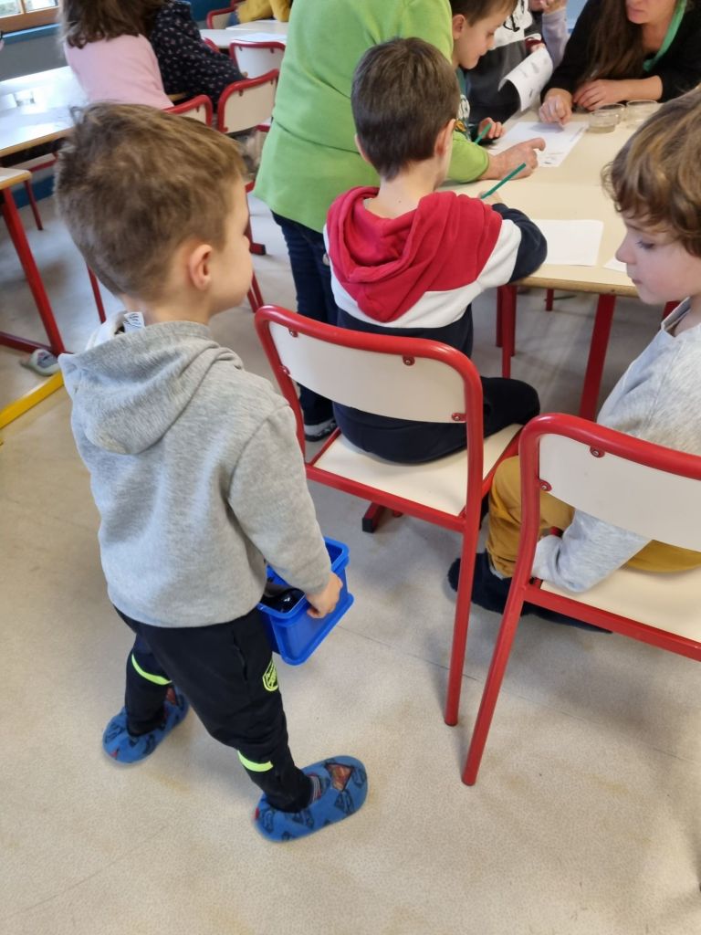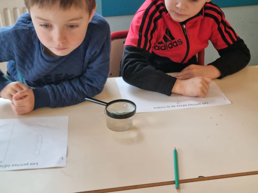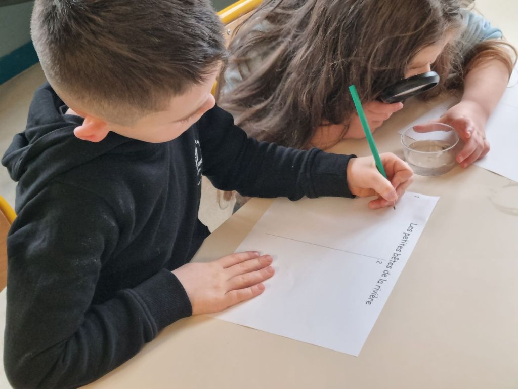 Durant la 2eme partie de matinée, les enfants ont dessiné les animaux de la rivière qu’ils avaient pêché hier. Puis ils ont cherché leur nom à partir d une fiche de clé d identification.
