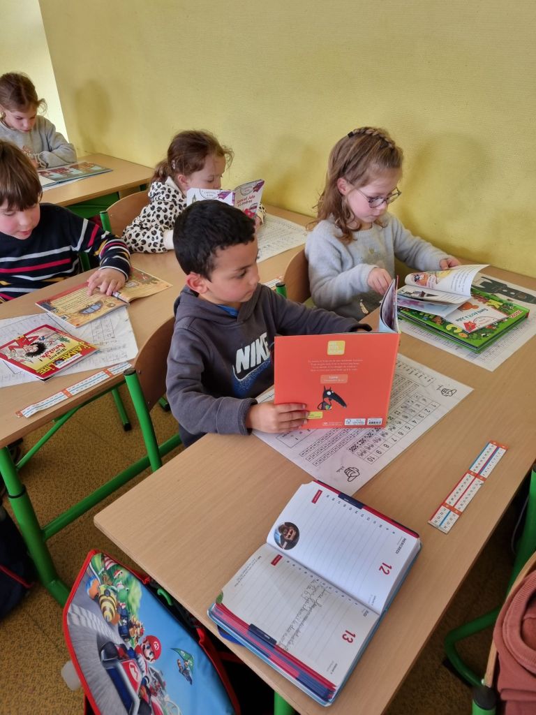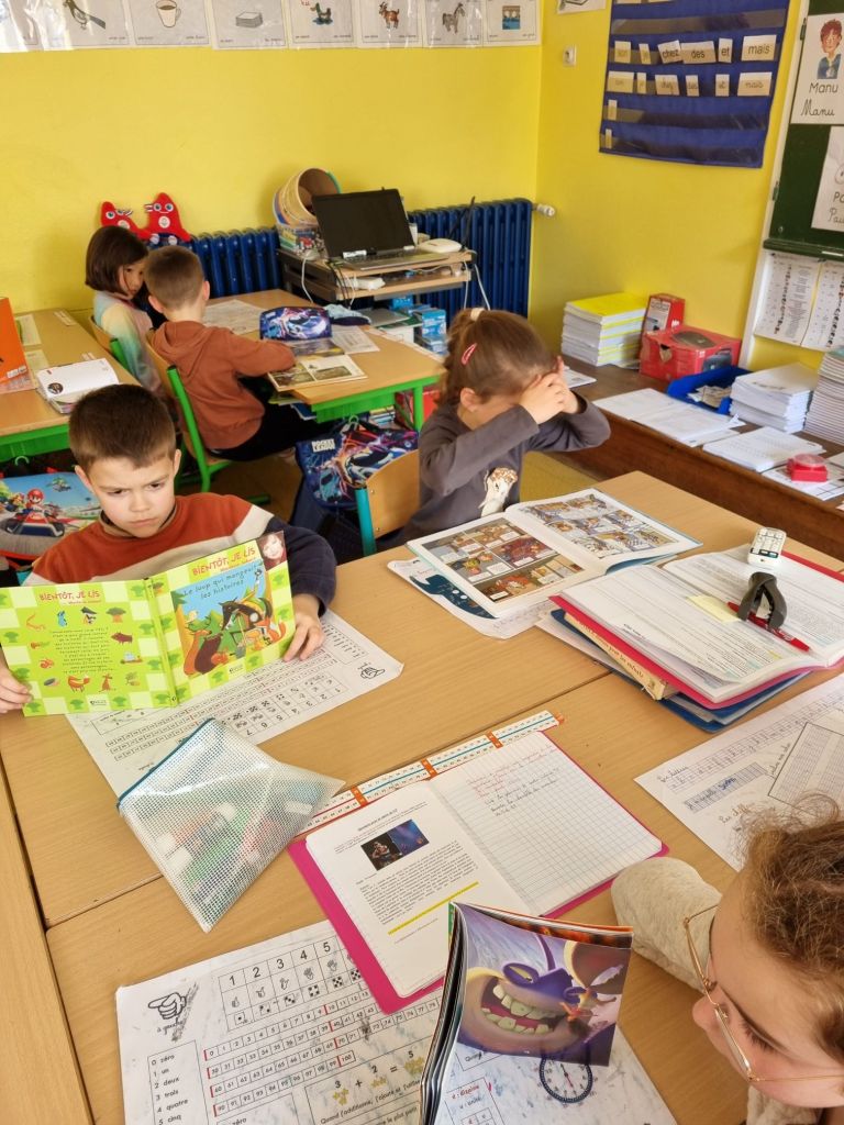 13h51: le silence règne dans la classe, chacun prend son livre et lit dans le calme. Quel plaisir de les voir lire!