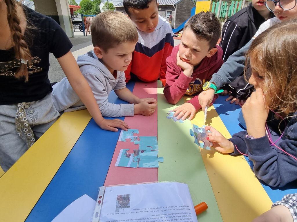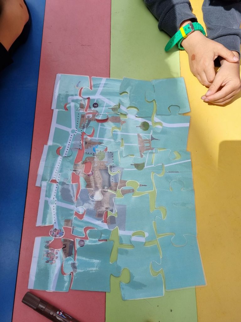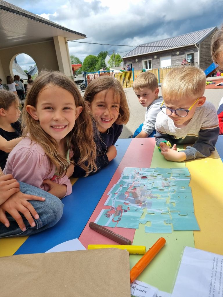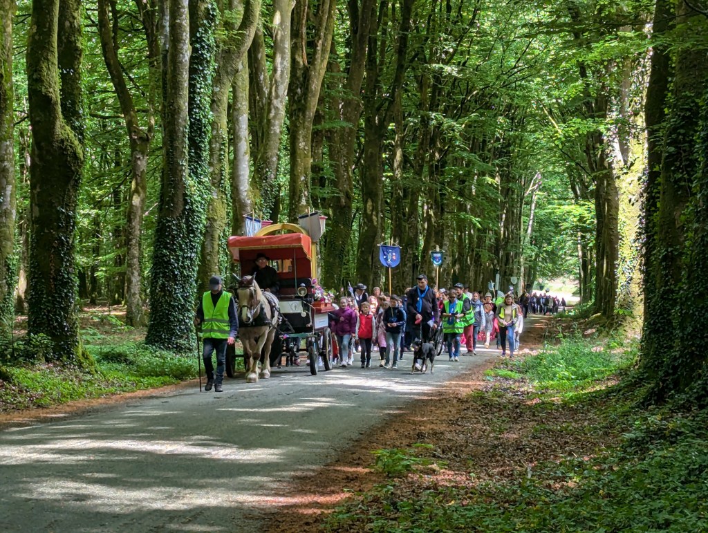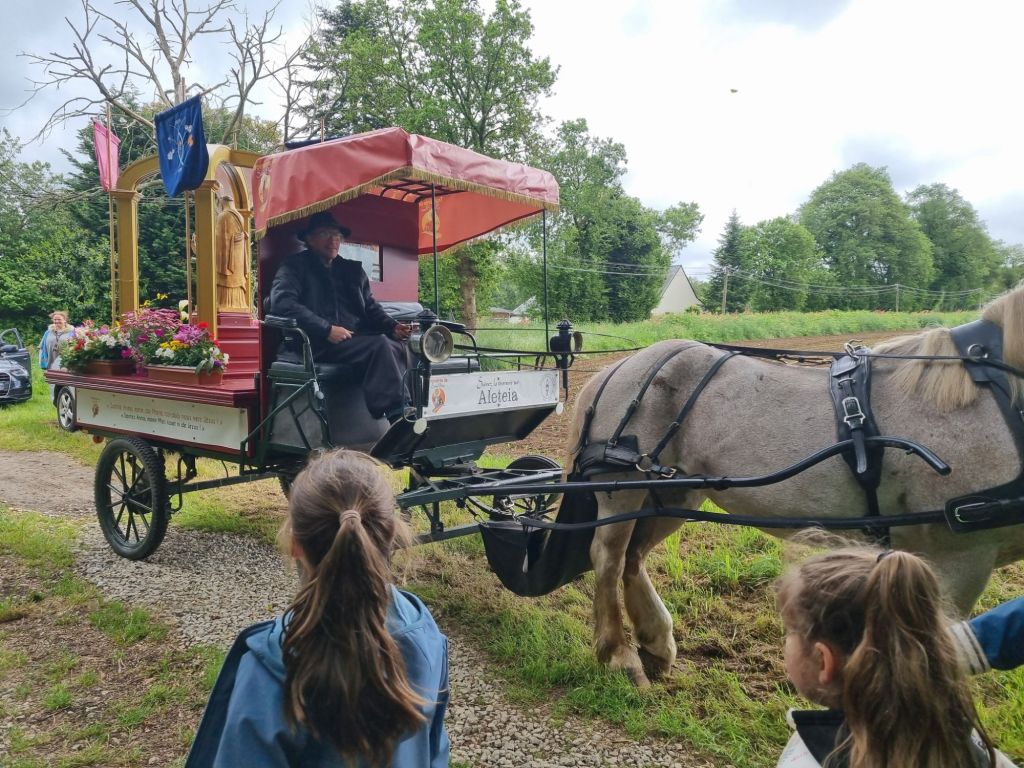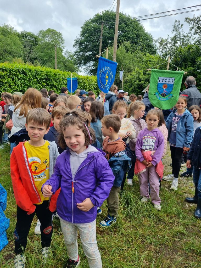 Aujourd’hui nous sommes allés rejoindre la calèche et suivre la Troménie jusqu’à l’école. Nous avons ensuite par groupe reconstituer le puzzle du chemin jubilaire de Sainte-Anne. Enfin nous sommes allés à l église pour une petite célébration.