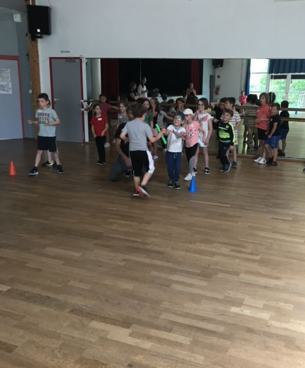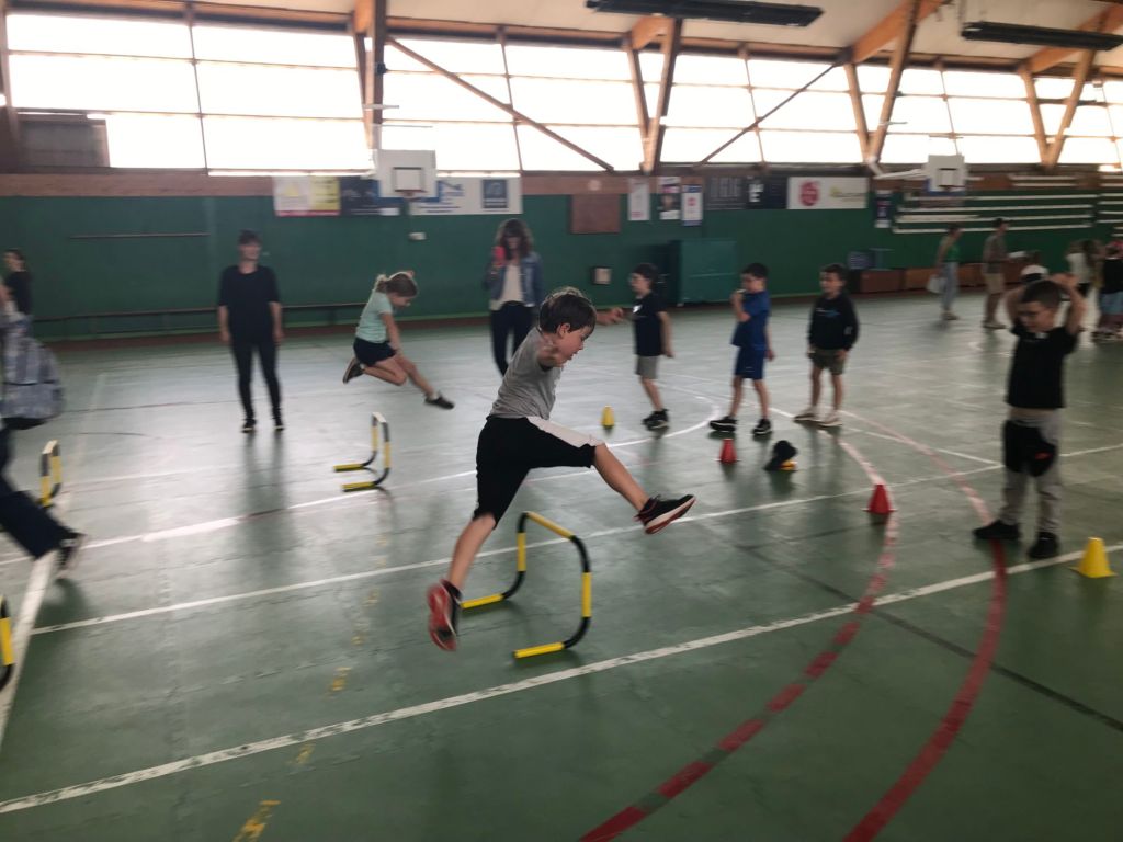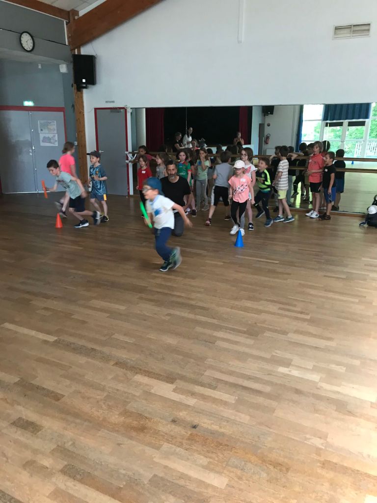 Après une agréable pique-nique sous le soleil, nous avons fait du sport. 3 pôles avec plusieurs activités étaient proposés aux enfants: jeux collectifs, athlétisme et relais.