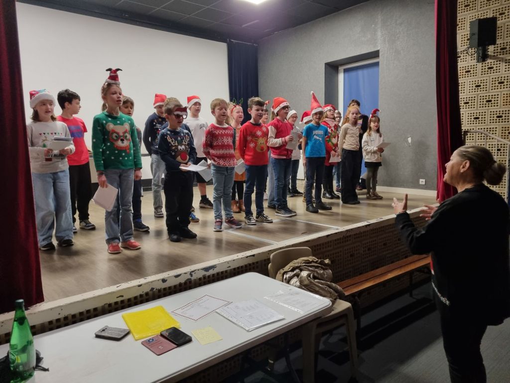 Ce matin, nous sommes allés voir les élèves de la classe de Ce2 cm1 qui ont interprété des chants de Noël à la salle jo le cheviller. Bravo à la classe de Catherine!